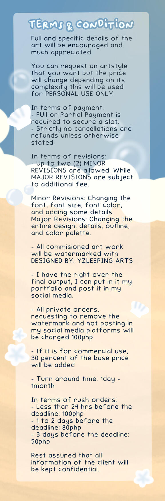 The following prices are just the base rates of my artworks, it may change depending on the complexity of the artwork, for what use, and the deadline.